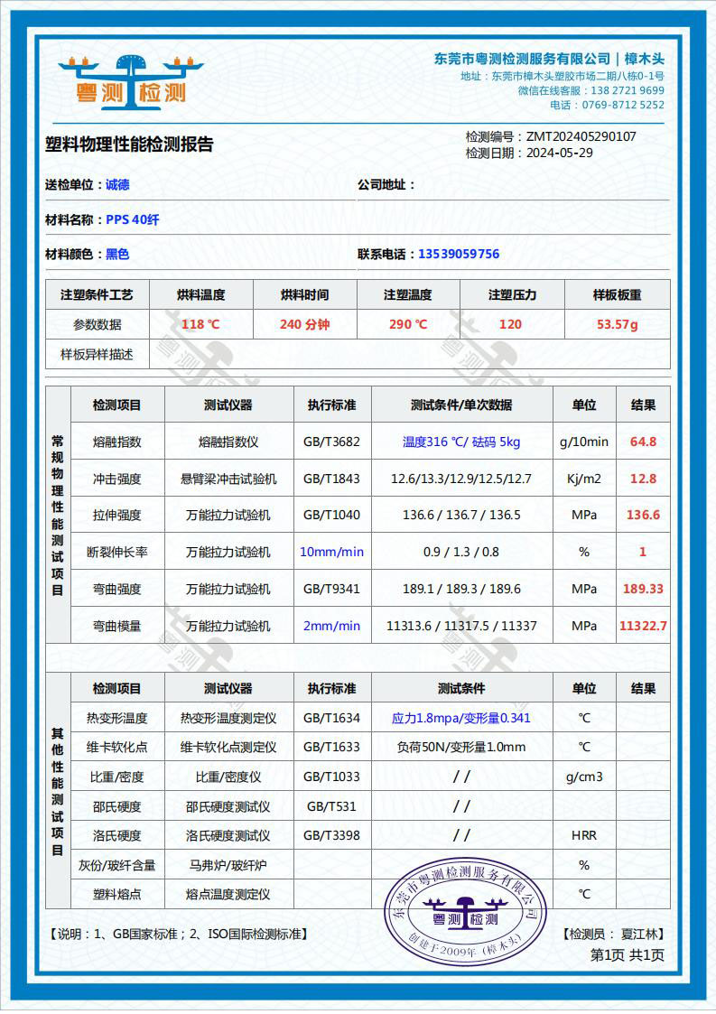 阻燃性:纯PPS阻燃等级达UL94 V-0,加纤后仍保持难燃特性,无需额外阻燃剂。